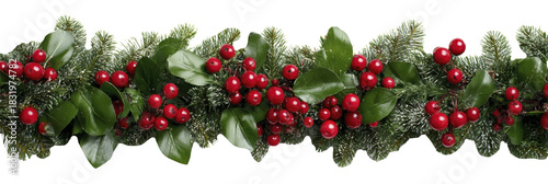© Viktoriia, Naklejka premium Festive holiday garland with red berries and greenery for seasonal decor isolated on transparent background