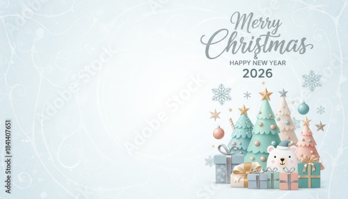 Fototapeta premium Festive holiday greetings winter wonderland digital artwork christmas theme cheerful atmosphere whimsical viewpoint seasonal celebration for 2026