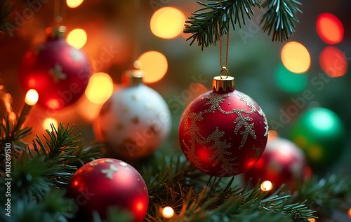 Fototapeta premium festive holiday scene bright colors ornaments adorn decorative christmas