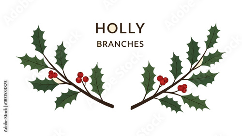 Fototapeta premium Festive Holly Branches: An illustration of symmetrical holly branches...