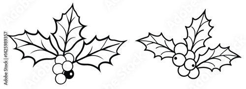 Naklejka premium Festive Holly Illustration: Artistic representation of holly branches with...