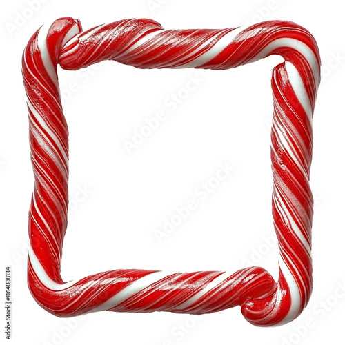 © CandyLove, Fototapeta premium Festive Horizontal Frame Made of Red Candy Cane on a Crisp White Background