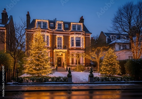 © Bandung, Obraz premium Festive house decorated for Christmas