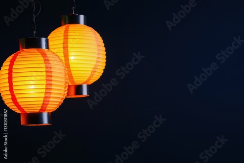 Obraz premium Festive Lanterns Glowing Brightly at Night in a Dark Space for Celebratory Atmosphere