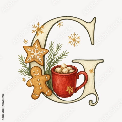 Naklejka premium Festive letter G illustration