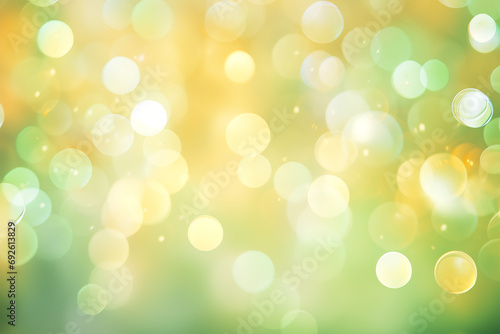 Fototapeta premium Festive Lights Bokeh Background with Circular Orbs in Yellow & Green - Decorative & Sparkling Effect