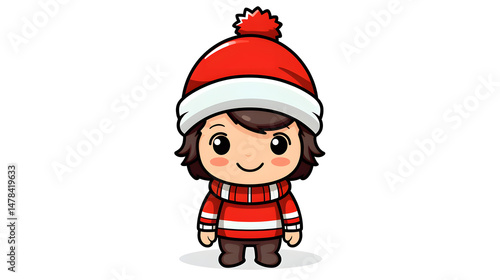 Obraz premium Festive Merry Christmas Portrait of Little Boy in Santa Hat and Sweater