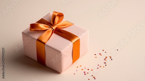 Fototapeta premium Festive Pink Gift Box with Orange Bow Confetti