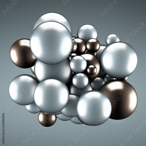 © Pierell, Fototapeta premium Festive, positive, bright gray background with balls. 3d illustration, 3d rendering.