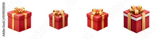 Fototapeta premium Festive Red and Gold Gift Boxes Isolated on White Background
