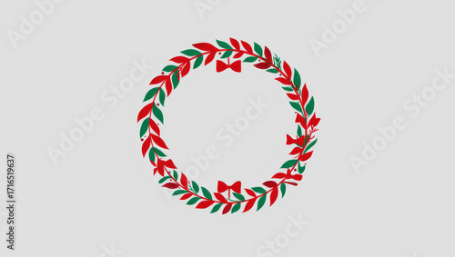 Fototapeta premium Festive red and green Christmas wreath with bows creates elegant holiday decor for seasonal projects