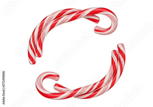 Fototapeta premium Festive red and white striped candy canes curved into a decorative christmas...