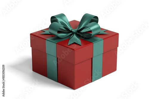 © MDNURALAM, Obraz premium Festive red gift box with green ribbon and bow