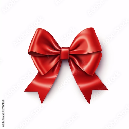 © LazysAI, Fototapeta premium Festive Red Ribbon with Bow on White Background - Detailed High Resolution Gift Decoration Vector Illustration | Realistic Photo Style