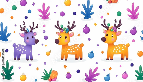 © Lailatul, Naklejka premium Festive reindeer pattern, winter holiday design