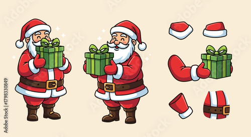 © AgnaPutri, Obraz premium Festive Santa Claus with Gift Illustration for Christmas Holiday Designs