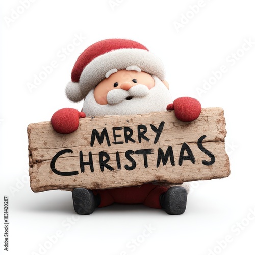 Naklejka premium Festive Santa Holding 'Merry Christmas' Sign with Holiday Spirit