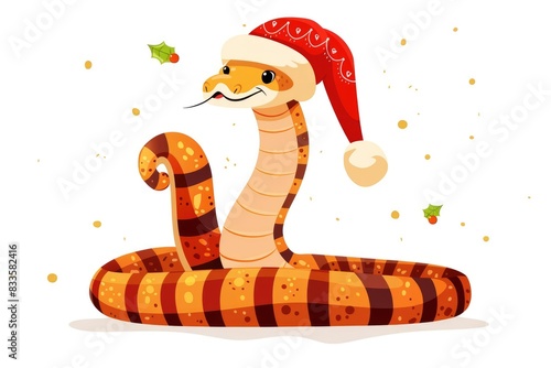 Fototapeta premium Festive Snake Cartoon Illustration Wearing Santa Hat