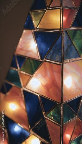 © decorator, Fototapeta premium Festive stained glass Christmas tree radiates warmth a modern geometric design evokes holiday cheer