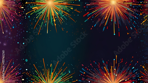 © Arief, Fototapeta premium festive starburst background with sparkling confetti and fireworks exploding in various directions