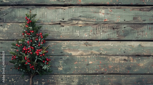 © AkuAku, Fototapeta premium Festive tree on wood surface