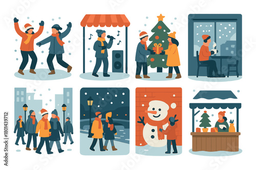 © ihor, Obraz premium Festive winter scenes with people enjoying holiday activities and celebrations