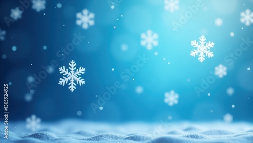 © CreativePulse, Naklejka premium Festive Winter Wonderland Scene Falling Snowflakes on a Snowy Ground Blue Background