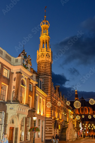 © Bert, Naklejka premium Festively illuminated shopping street in Alkmaar, the Netherlands.