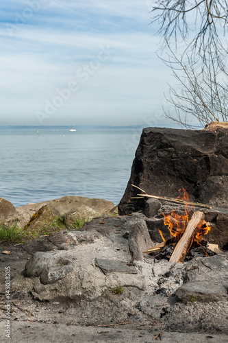 Obraz premium feuer am see