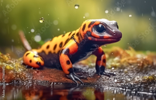 Fototapeta premium Feuersalamander (Salamandra salamandra), Generative AI