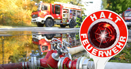 Fototapeta premium Feuerwehr Einsatz mit Haltekelle Bevölkerungsschutz