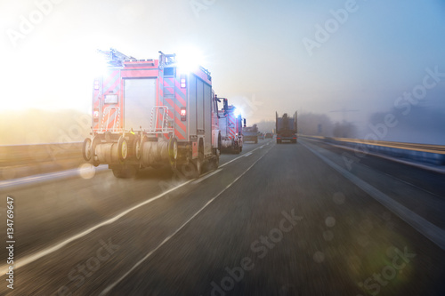© VanHope, Fototapeta premium Feuerwehrauto auf Autobahn