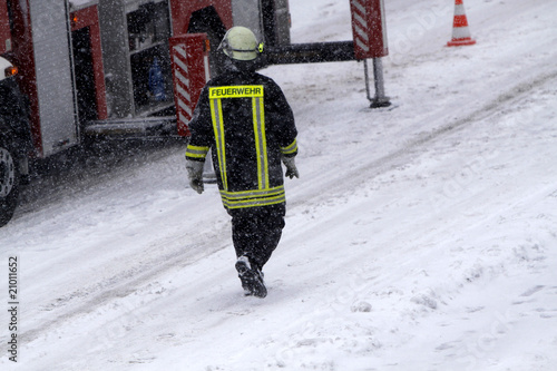 © Martina Berg, Obraz premium Feuerwehreinsatz in dichtem Schneetreiben
