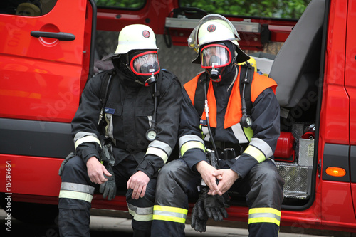 © fotobi, Naklejka premium Feuerwehrmänner mit Atemschutzgerät