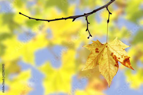 © imagika, Fototapeta premium Feuille seule suspendue à une branche
