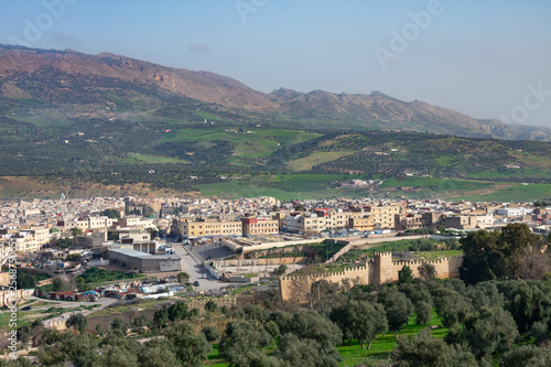 © James, Fototapeta premium Fez Morocco Skyline Scene with Hills and Mountains