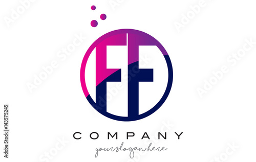 Obraz premium FF F F Circle Letter Logo Design with Purple Dots Bubbles