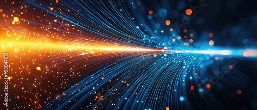Obraz premium Fiber optic cables boosting bandwidth for global telecommunication networks,...