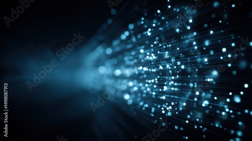 © Strive Studio, Fototapeta premium Fiber optics abstract blue light background with blurred motion and bokeh effects.