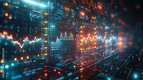Fototapeta premium fiber optics background with spots A high-tech background featuring a...