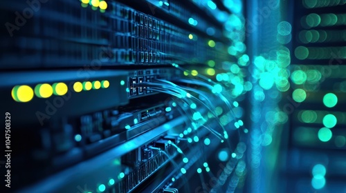 © Fiza, Obraz premium Fiber optics transmitting data to computer hardware