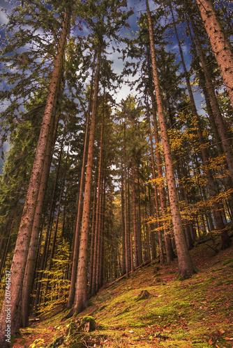 Obraz premium Fichtenwald am Herbstabend