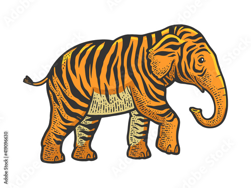 Fototapeta premium fictional animal tiger elephant sketch raster