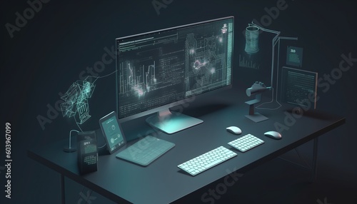 Fototapeta premium Fictional Development Environment Brightly Lit and Full of Effects Generated by AI