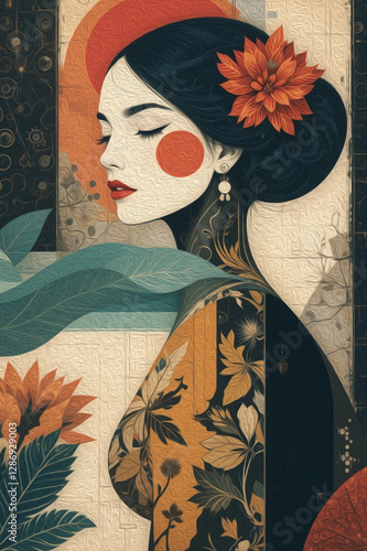 © Wioletta, Fototapeta premium Fictional female character. Oil painting. Artistic brush strokes.