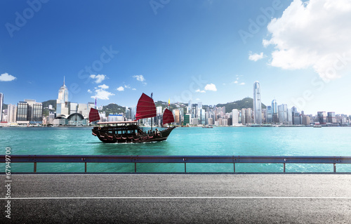 © Iakov Kalinin, Fototapeta premium fictional road in Hong Kong harbour