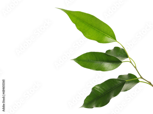© dule964, Fototapeta premium Ficus Benjamina green leaves, weeping fig twig isolated on white, clipping path