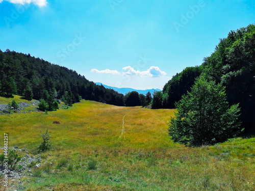 Obraz premium Fied in Italian mountain area, Abruzzo, on a sunny day