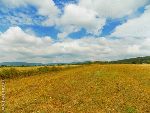 © majo1122331, Fototapeta premium Field after harvest, hills and sky