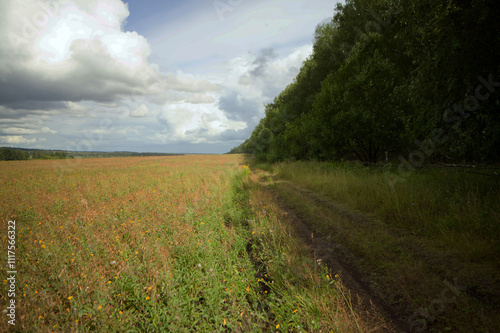 © moskvich1977, Fototapeta premium Field after harvesting grain on a cloudy day